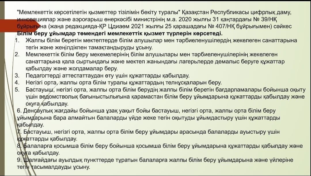 » Білім беру ұйымы төмендегі мемлекеттік қызмет түрлерін көрсетеді